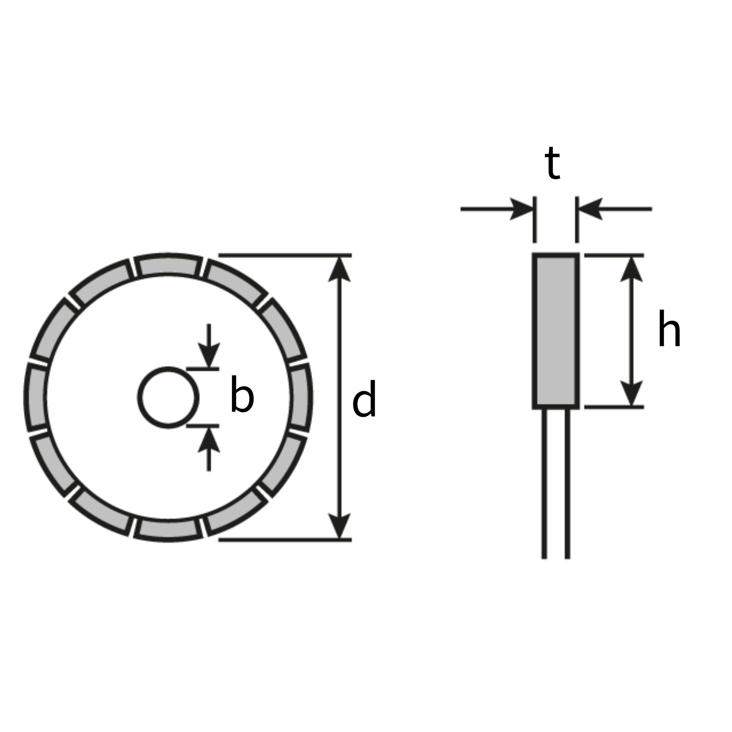 | Code | Diameter (d) (mm) | Bore Diameter (b) (mm) | Segment Height (h) (mm) | Segment Thickness (t) (mm) |