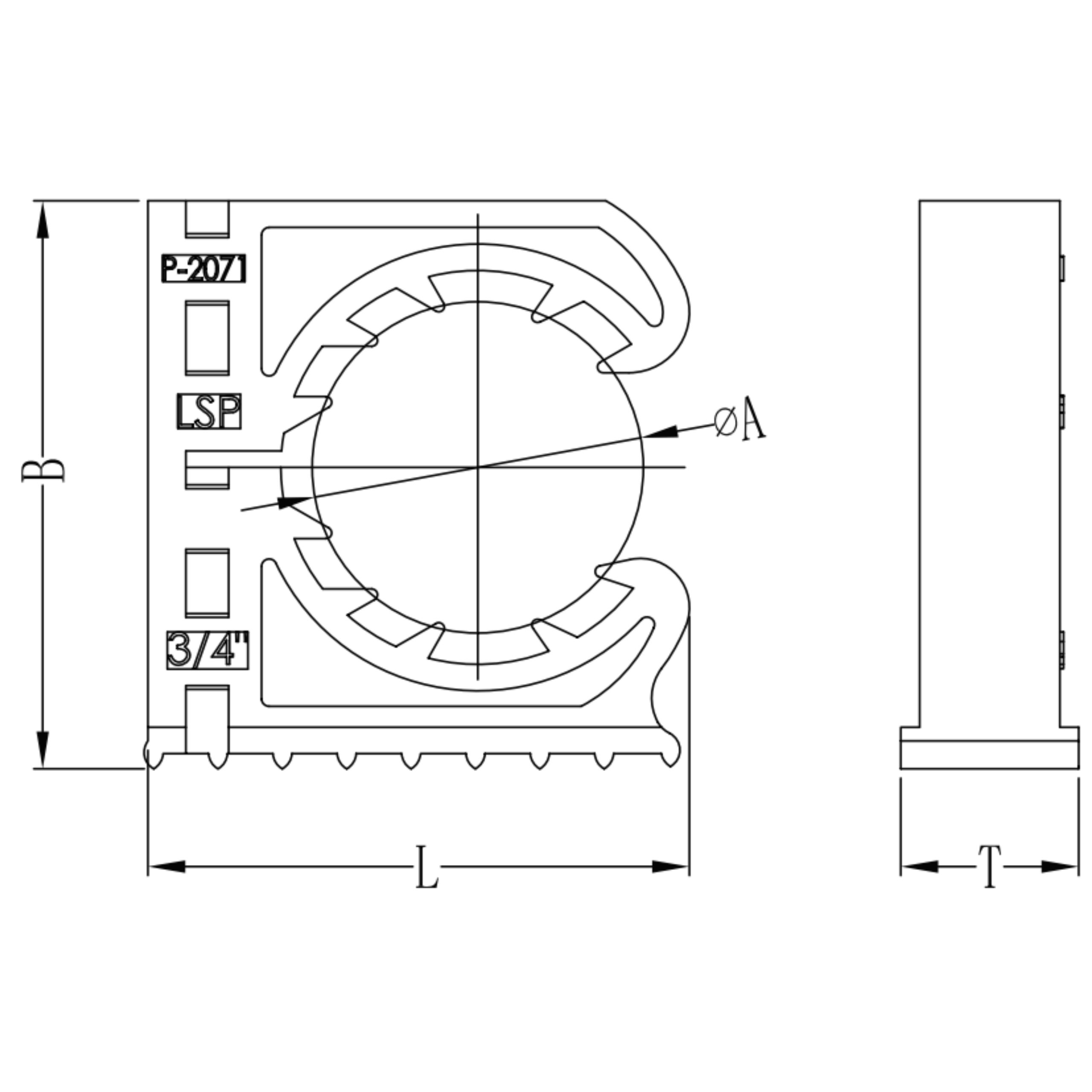 | Code | Nominal Pipe Size (IN) | A (mm) | B (mm) | L (mm) | T (mm) | H (mm) |